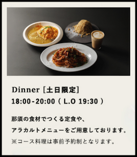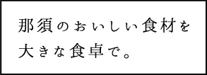 那須の生産者さんたちが作った、おいしい野菜やお肉・加工品などを使用した料理を、大きな食卓でゆったりといただけます。